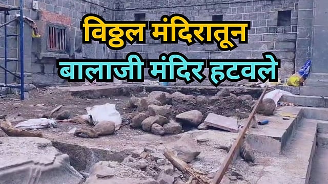 पंढरपूर : अयोध्येतील राम मंदिरातून (Ram Temple Ayodhya) साईबाबांची मूर्ती हटवल्याची घटना ताजी असतानाच आता पंढरपूर येथील विठ्ठल मंदिरातून बालाजीचे मंदिर (Balaji Temple) हटवण्यात आल्याचा धक्कादायक प्रकार समोर आला आहे. येथील विठ्ठल रुक्मिणी मंदिराचे (Vitthal Rukmini Mandir) जतन आणि संवर्धनाचे काम सुरु आहे. गेल्या वर्षभरापासून हे काम रडतखडत सुरु आहे. मंदिराचे काम संथगतीने सुरु असल्याची भाविकांची ओरड असतानाच मंदिरातील बाजीराव पडसाळी समोरील बालाजीचे पुरातन दगडी मंदिर हटवण्यात आल्याने भाविकांमधून तीव्र नाराजी व्यक्त केली जात आहे.