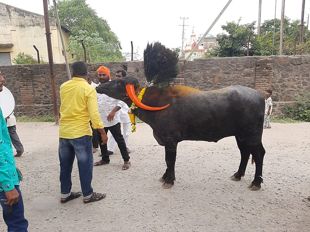 दादा मारकड या हौशी पशु मालकांनी घरी दारातच रेड्यांची सजावट करून हलगी - ताशांच्या गजरात पूजा केली. या वेळी महालक्ष्मी प्रतिष्ठानचे अध्यक्ष अण्णा पेठकर, विकास अलदर, पिंटू घोलप, उमेश पवार, दिनेश मस्के, हेमंत बाबर, सामाजिक कार्यकर्ते गणेश गाढवे, तुळशीदास मस्के, हरिभाऊ खांडेकर, पप्पू मस्के, आकाश लाकाळ आदी उपस्थित होते.