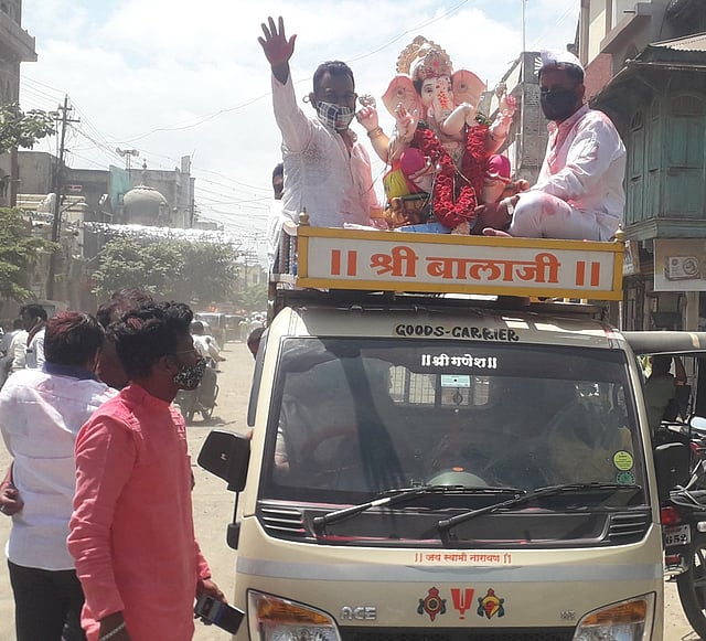 बार्शी (सोलापूर) : दरवर्षी शहरात गणेश उत्सवामध्ये शंभरपेक्षा अधिक मंडळे विविध पौराणिक,सांस्कृतिक,सामजिक देखावे तयार करुन गर्दी खेचताना पाहिले आहे पण यावर्षी कोरोनाच्या सावटाखाली गणेश उत्सव शासनाच्या निकषानुसार साजरा करावयाचा असल्याने अगदी साधेपणाने 45 मंडळांनी गणेश मुर्तींची प्रतिष्ठापना केली आहे. मुर्ती आणण्यासाठी ना गाजावाजा,ना कार्यकर्त्यांची फौज, ढोल,ताशे,बँड पथक,ट्रॅक्टर असा कोणताही डामडौल केला नाही पाच जणांनी मिळून टेम्पोतून गणेशमूर्ती घेऊन जाताना गणपती बप्पा मोरया असा जयघोष करीत आनंदोत्सव साजरा करुन गणेशमुर्तीची प्रतिष्ठापना केली.