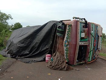 आंध्रप्रदेश येथील श्रीनिवास मेटी यांनी नाशिक येथे पाठवलेला सिमेंटचा ट्रक आहे. सिमेंटचा ट्रक रस्त्यावरच पलटी झाल्याने प्रवासी व वाहनधारकांना मोठा त्रास सहन करावा लागत आहे. बार्शी-तुळजापूर राज्यमार्ग खराब रस्त्यामुळे व सततच्या अपघातामुळे या अगोदर नेहमीच चर्चेत राहिला आहे. याच महामार्गावर जामगाव (पा), मळेगाव येथे फरशीचा ट्रक पलटी होऊन मोठं आर्थिक नुकसान झाले होते. तसेच विविध ठिकाणी अपघातात होऊन अनेकांचे मृत्यू देखील झाले आहेत. उपळे, मळेगाव, गौडगाव येथील नागरिकांनी वेळोवेळी आंदोलन करीत व विविध मागण्यांचे निवेदन देत प्रशासनाचे लक्ष वेधले आहे. प्रशासनाने शेलगाव ते बावी पर्यंतच्या मार्गाचे नव्याने डांबरीकरण केले. मात्र पुढे बावी- मळेगाव- जामगाव- उपळे- गौडगाव- तुळजापूर येथील रस्ता डांबरीकरनाच्या प्रतिक्षेत आहे. रस्त्यावर पडलेले खड्डे तात्पुरती मलमपट्टी करून बुजवले जातात. काही दिसतात तेच बुजवलेले खड्डे उखडले जातात. पुन्हा एकदा प्रवासी, वाहनधारकांच्या स्वागतासाठी तयार असतात. त्यामुळे वारंवार घडणारे अपघात टाळण्यासाठी तात्काळ पुढील कामास सुरुवात करावी, अशी भावना नागरिकांमधून व्यक्त होत आहेत.