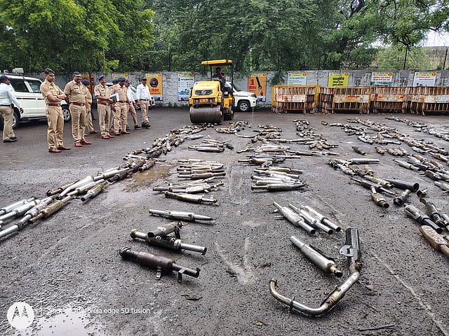 सोलापूर : बुलेटचे सायलेन्सर बदलून मोठ्या आवाजाचे मॉडिफाईड सायलेन्सर बसविणाऱ्या बुलेटराजांवर सोलापूर शहर वाहतूक पोलिसांकडून कारवाई केली जात आहे. जानेवारी ते मे या पाच महिन्यांत वाहतूक पोलिसांनी तब्बल ५२५ मॉडिफाईड सायलेन्सर काढून जप्त केले. त्या सायलेन्सरवर आज (मंगळवारी) वरिष्ठ अधिकाऱ्यांच्या उपस्थितीत रोडरोलवर चालविण्यात आले.