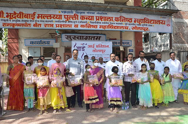 सोलापूरः येथील आई प्रतिष्ठानच्या वतीने शहरातील पुल्ली कन्या प्रशाला व दयानंद महाविद्यालयात गरजू मुलांना दिवाळीसाठी कपडे व फराळाचे वाटप करण्यात आले.