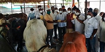 बार्शी(सोलापूर)ः दूध उत्पादक शेतकऱ्यांना न्याय मिळावा या मागणीसाठी भाजपा व मित्र पक्षांच्यावतीने 20 जुलै व 1 ऑगस्ट रोजी दुध दरवाढ व दुध भुकटीला अनुदान मिळावे म्हणून दोनवेळा आंदोलन केले. परंतू राज्याच्या आघाडी सरकारने आजपर्यंत कोणताही न्याय दिला नाही व त्याची दखलही घेतली नाही. शेतकरी उध्वस्त होत चालला आहे. या निषेधार्थ मातोश्रीवर पोस्टकार्ड पाठवण्याचा शुभारंभ शुक्रवारी (ता.14) बार्शीतून गाईच्या गोठ्यातून करण्यात आला.
