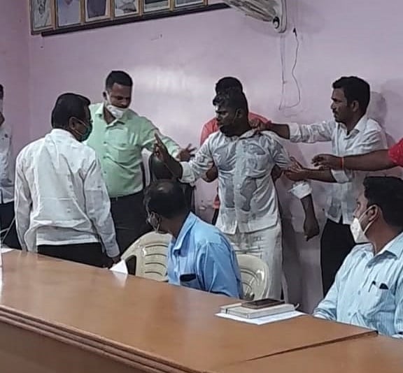 कोरोनाच्या संकटामध्ये शेतकऱ्यांना बॅंकेत येऊन होणारा त्रास वाचावा म्हणून शासनाने सोलापूर जिल्हाधिकाऱ्यांच्या संकेतस्थळावर ऑनलाइन पीककर्ज मागणीचा अर्ज सादर करण्याच्या सूचना देण्यात आल्या. परंतु ऑनलाइन अर्ज केलेल्या बहुतांश शेतकऱ्यांना अद्याप पीक कर्जाचे वाटप झाले नसल्यामुळे व याकडे बॅंकेच्या वरिष्ठ अधिकाऱ्यांनी देखील या प्रकाराकडे दुर्लक्ष केल्यामुळे संतप्त झालेल्या स्वाभिमानी शेतकरी संघटनेच्या पदाधिकाऱ्यांनी आज पंचायत समितीच्या सभागृहात सुरू असलेल्या अधिकाऱ्यांच्या बी.एल.बी.सी. बैठकीमध्ये घुसून शाईफेक व तोंडाला काळे फासले. सर्वाधिक तक्रारी नदीकाठच्या भागात असलेल्या आरळी व माचणूर येथील आयसीआयसीआय बॅंकेबद्दल आहेत. त्या बॅंकेच्या अधिकाऱ्यावर शाईफेक करण्यात आली. शेतकऱ्याने अंगावर रॉकेल ओतून आत्महत्या करण्याचा प्रयत्न केल्यामुळे एकंदरीत कोरोनाच्या संकटात बॅंक अधिकाऱ्यांच्या मुजोर व एकाधिकारशाही कारभाराकडे बॅंकेचे वरिष्ठ अधिकारी देखील दुर्लक्ष करत असल्याचे यावरून दिसून आले.