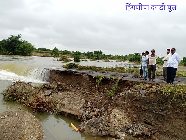 मळेगाव परिसरातील मळेगाव- हिंगणी - वैराग गावांना जोडणाऱ्या भोगावती नदीवरील 50 वर्षांपूर्वीच्या दगडी पुलाचा भाग महापुराच्या पाण्यात वाहून गेल्याने वाहतूक व जनजीवन ठप्प झाले आहे. हिंगणी येथील दगडी पूल अनेकवेळा भोगावती नदीला महापूर आल्याने पाण्याखाली गेला मात्र 14 ऑक्टोबरच्या महापुरात पुलाचा भाग उद्ध्वस्त झाला आहे. तसेच साकत - ढाळे पिंपळगाव - मळेगाव गावांना जोडणारा ढाळे पिंपळगाव येथील पूल वाहतुकीसाठी धोकादायक बनला आहे. निलकंठा नदीच्या पात्रातील पुलावरील स्लॅब वाहून गेल्याने लोखंडी गज उघडे पडले आहेत. पुलावर विविध ठिकाणी खड्डे पडले आहेत. त्यातूनच नागरिक जीवघेणा प्रवास करीत आहेत.