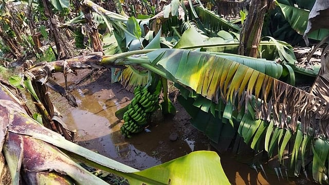 सध्या नवरात्र उत्सवामुळे केळीचे दर तेजीत असताना, रोगाचा प्रादुर्भाव वाढू लागल्याने शेतकरी चिंताग्रस्त झाला आहे. त्यामुळे हातातोंडाशी आलेला घास निघून जाण्याची भीती शेतकऱ्यांमधून व्यक्त केली जात आहे. तर अनेक ठिकाणी वादळी वाऱ्याने केळीच्या बागा उन्मळून पडल्या आहेत. रोजच पाऊस लागून राहिल्याने पिकांमध्ये तणांचे प्रमाण मोठ्या प्रमाणात वाढू लागले आहे.