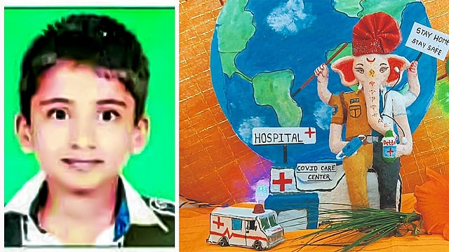 गेल्या काही वर्षांपासून सर्वत्र पर्यावरणपूरक गणेशोत्सव साजरा करण्यावर भर दिला जातो. त्यामुळे लाखो भक्त बाप्पाच्या मूर्तीपासून ते आरास बनवण्यापर्यंत सर्व काही इको फ्रेंडली पद्धतीने करण्यावर भर देतात. गेले चार वर्षापासून संस्कार पर्यावरणपूरक व प्रदूषणमुक्त गणेशमूर्ती घरच्या घरी तयार करून गणेशोत्सव साजरा करीत असतो. यावर्षी सर्वत्र कोरोनाचे सावट असल्यामुळे त्याने कोरोनायोद्धाची गणेशमूर्ती तयार करण्याचे ठरवले. त्यासाठी घरासमोरील बागेतील माती व रद्दी पेपरचा एकत्र वापर करून त्यापासून मूर्ती तयार केली.