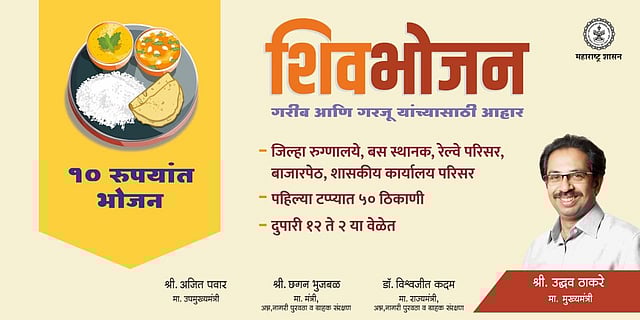 सोलापूर : राज्यातील महाविकास आघाडी सरकारचे मुख्यमंत्री उद्धव ठाकरे यांनी गरिबांसाठी दहा रुपयात भोजन देण्यासाठी सुरू केलेल्या शिवभोजन थाळी योजनेला राज्यात उत्स्फूर्त प्रतिसाद मिळत आहे. सोलापुरात सध्या पाच ठिकाणी ही थाळी मिळत असून आणखीन दोन ठिकाणी ही थाळी सुरू करण्याचा प्रस्ताव अन्नधान्य वितरण कार्यालयाच्यावतीने राज्य सरकारला पाठविण्यात आला आहे.
