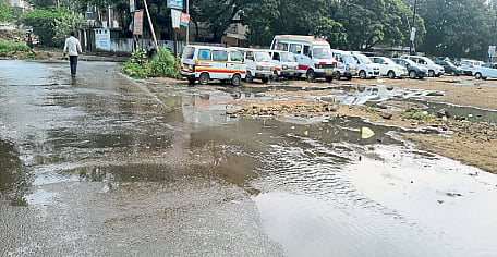 शहर व जिल्ह्यासह परराज्यातील नागरिक अद्ययावत उपचारासाठी अश्विनी हॉस्पिटलमध्ये येतात. दररोज या हॉस्पिटलच्या मुख्य प्रवेशद्वारासमोरील परिसरात मोठ्याप्रमाणात ड्रेनेजचे पाणी साचत आहे. ॲम्बुलन्ससह इतर चारचाकी वाहनासाठी असलेली पार्किंगची जागाही खड्ड्यात असल्याने त्याठिकाणी ड्रेनेजचे पाणी कायमस्वरुपी साचून राहिल्याने हा परिसर दुर्गंधीयुक्त बनला आहे. याच बाजूला रुग्णांच्या नातेवाईकांसाठी बसण्यासाठी, जेवणासाठी शेडची सुविधा उपलब्ध करून दिली आहे. परंतु, येथील दुर्गंधीयुक्त परिसर, मच्छर आदींमुळे रुग्णांच्या नातेवाईकांना बसणे असह्य बनत आहे. गेल्या अनेक दिवसांपासून या रुग्णालयाबाहेर आरोग्याचा खेळखंडोबा पहायला मिळत आहे. लष्कर रोड व अश्विनी हॉस्पिटलला जोडणाऱ्या या छोट्या मार्गावरून ड्रेनेजचे पाणी वाहत असते. दिवसभरात हजारो नागरिक, रुग्ण, रुग्णाचे नातेवाईक यांना ड्रेनेजच्या घाणपाण्यातूनच वाट काढत ये-जा करावी लागत आहे.