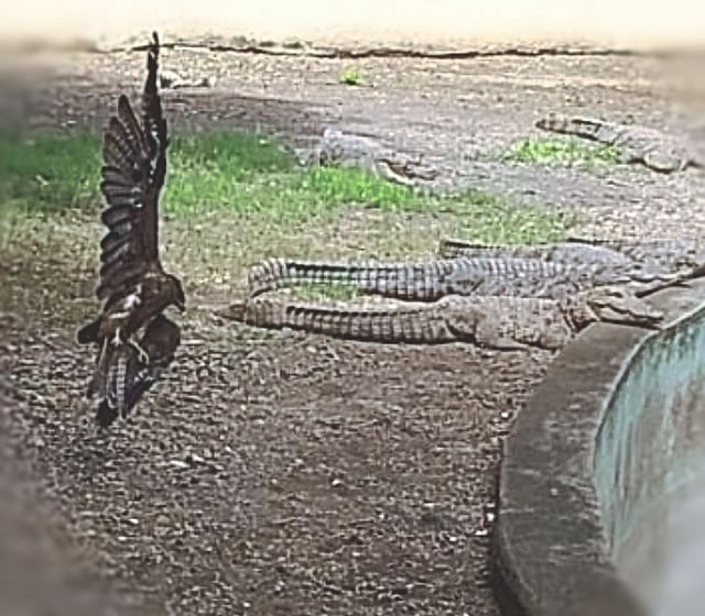 तिच्या खाली पाण्यात 16 मगरी विश्रांती घेत बसल्या होत्या. तेव्हा महानगरपालिकेची बास्केट गाडी मागविण्यात आली. गाडी येताच बास्केटमध्ये बसून तीस फूट उंचीवर हे सदस्य घारीच्या ठिकाणी पोहोचले. त्यांनी बांबु हुकने घारीची मांज्यातून सुटका केली. घारीच्या पंखाना बराच इजा झाल्याचे दिसून आले.