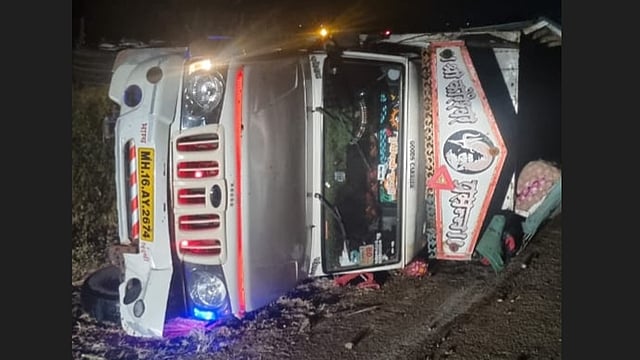 कांदा घेऊन निघालेल्या पिकपचा अचानक मागील टायर फुटून ती पलटी होऊन झालेल्या अपघातात तिघांचा मृत्यू झाला.
