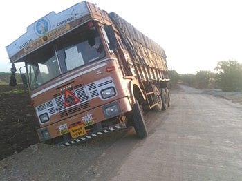 माळीनगर(सोलापूर): पंचवीस चार ते टेंभुर्णी मार्गाच्या कॉंक्रिटीकरण झालेल्या रस्त्याच्या साईडपट्ट्यांचे काम निकृष्ट दर्जाचे झाल्याने अवजड वाहने त्यावर फसू लागली आहेत.