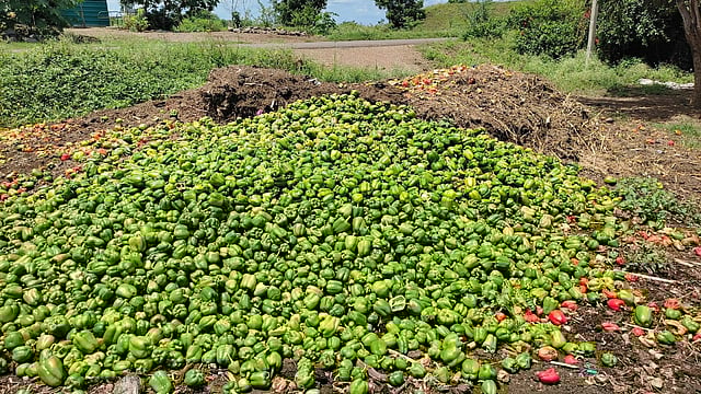 चालू वर्षी ढोबळी मिरचीवर खर्च केलेला उत्पादन खर्चही शेतकऱ्यांना निघाला नाही. शेतकऱ्यांना एकूण खर्चाच्या पदरमोड करावी लागत आहे. अनेक शेतकऱ्यांनी खर्च करून हाती काही येत नसल्याने मिरची तोडून शेतात बांधावर किंवा खड्ड्यात फेकून देत असल्याचे चित्र तालुक्यात पाहावयास मिळत आहे. तर काही ठिकाणी पहावयास मिळत आहे तर काही शेतकरी सध्या तोटा होत असला तरी पुढच्या वेळेस दर वाढून हाती काही तरी आपल्याला शिल्लक राहिल आशेवर अजूनही खर्च करीत आहेत.