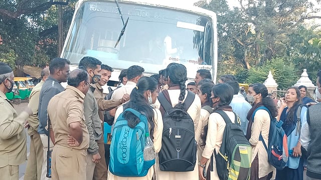 बेळगाव : कुद्रेमानी (ता. बेळगाव) गावाला जाणाऱ्या बसला सायंकाळी शाळा-महाविद्यालय सुटण्याच्या वेळेला गर्दी होत आहे. यामुळे कुद्रेमानी गावातील विद्यार्थ्यांना सायंकाळी ५ च्या ऐवजी रात्री ७.३० बसने घरी जावे लागत आहे. यामुळे कुद्रेमानीला शाळेच्या वेळेत सकाळी २ व सायंकाळी २ बसेस अधिक सोडाव्यात, अशी मागणी करत विद्यार्थ्यांनी युनियन जिमखान्याजवळ मंगळवारी (ता. २३) सायंकाळची बस थांबवून सुमारे तासभर आंदोलन केले.