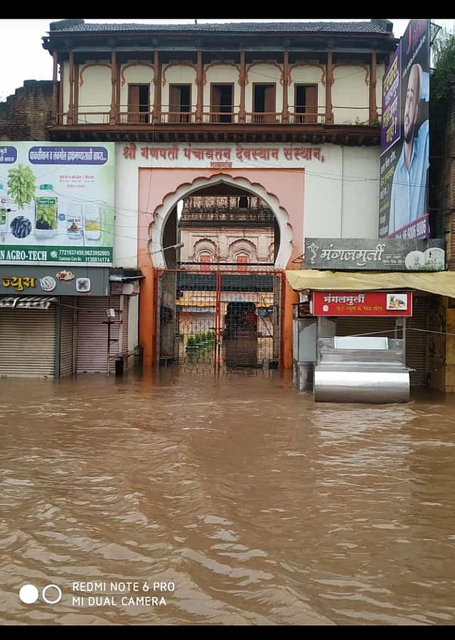 मध्यवर्ती वाहणाऱ्या ओघळीचे पाणी चक्क गणपती मंदिरात शिरले. शहरातील पालिकेच्या शॉपिंग सेंटर मधील अनेक दुकानांमध्ये दोन दोन फूट पाणी शिरल्याने लाखो रुपयांचे नुकसान झाले. सकाळी नऊ वाजेपर्यंत शहरात पाणीच पाणी सगळीकडे असे चित्र दिसत होते. सकाळी अकरा वाजल्यानंतरही काही प्रमाणात पाऊस पडतच होता.