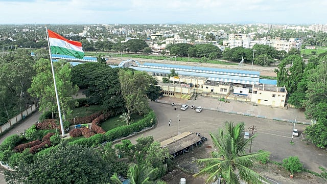 सांगली : स्वातंत्र्याच्या अमृत महोत्सवी वर्षात सांगली रेल्वे स्थानक परिसरात पश्चिम महाराष्ट्रातील सर्वांत उंच राष्ट्रध्वज फडकविण्यात आला. सन २०१८ मध्ये कामास प्रारंभ झाला. दोन वर्षांपासून ध्वज डौलाने फडकतोय. काही महिन्यांपूर्वी ध्वज खराब झाल्याने बदलण्याचा निर्णय झाला होता. नवा ध्वज प्राप्त झाल्यानंतर दोन दिवसांपूर्वी ध्वजवंदन करण्यात आले. मिरजेतील जंक्शन मोठे असले, तरी उंच तिरंगा जिल्हा मुख्यालयाच्या ठिकाणी स्थानकात उभारण्याची योजना होती. त्यामुळे तो सांगलीत उभारण्यात आला.