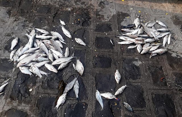 पिंपरी : पवना नदीवरील रावेत बंधारा. पुनावळे व रावेत गावे जोडणारा. शहरासाठी अशुद्ध जलउपसा येथूनच होतो. सांगवडेपासून बंधाऱ्यापर्यंत अनेक नाले नदीला मिळतात. त्या माध्यमातून रसायनयुक्त पाणी मिसळले जाते. त्यामुळे जलप्रदूषण वाढले असून, मासे मृत्युमुखी पडत आहेत. रविवारीही हजारो मृत मासे तरंगताना आढळले. पर्यावरणप्रेमींनी ते पाण्यातून बाहेर काढले. मासे मृत होण्याची ही आठ दिवसातील तिसरी घटना आहे.
