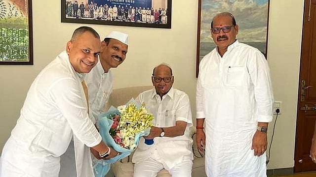 पिंपरी : तीर्थक्षेत्र श्री क्षेत्र भंडारा डोंगर येथे सुमारे १२५ कोटी रुपये खर्चाचे उभारण्यात येत असलेले जगद्गुरू श्री संत तुकाराम महाराज मंदिरासंदर्भात श्री विठ्ठल-रखुमाई, तुकाराम महाराज भंडारा डोंगर ट्रस्टच्या विश्वस्तांनी ज्येष्ठ नेते शरद पवार यांची बारामतीत भेट घेऊन चर्चा केली. तीर्थक्षेत्र भंडारा डोंगर देवस्थान ट्रस्टचे अध्यक्ष बाळासाहेब काशीद-पाटील, पंकज गावडे, माजी आमदार विलास लांडे उपस्थित होते. त्यांनी रविवारी (ता. २३) सकाळी शरद पवार यांची भेट घेऊन त्यांना श्री क्षेत्र भंडारा डोंगर येथे सुमारे १२५ कोटींचे उभारण्यात येत असलेल्या संत तुकाराम महाराज मंदिरासंदर्भात माहिती दिली. मंदिराच्या कामाची पार्श्वभूमी विलास लांडे यांनी सांगितली. बाळासाहेब काशीद यांनी मंदिराचे स्वरूप आणि चालू असलेल्या कामाची माहिती देऊन पवार यांनी मंदिराची माहिती दिली.