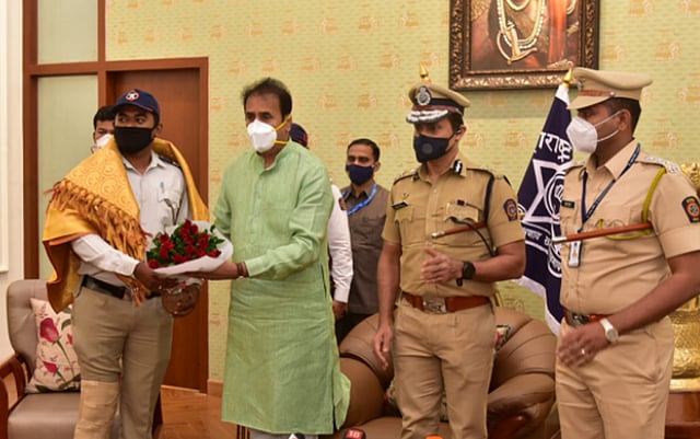 अनिल देशमुख यांनी सावंत त्यांच्या पाठीवर शाबासकीची थाप मारून घटनेची सविस्तर माहिती घेतली. तसेच त्यांच्या कामगिरीचे कौतुक करीत जिवाची बाजी लावून कर्तव्य निभावणाऱ्या आबा सावंत सारख्या वाहतूक पोलिसांचा आपल्याला सार्थ अभिमान असल्याचे गौरवोद्गारही त्यांनी काढले. दरम्यान, पोलिस आयुक्त कृष्णप्रकाश यांनीही आबा सावंत यांना दहा हजार रुपयांचे रोख पारितोषिक दिले आहे.