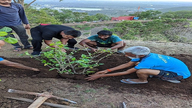 तळेगाव दाभाडे मस्करनेस कॉलनीत राहणारे काळूराम श्रीपती कुंभार. आकुर्डीतील खासगी कंपनीत कामाला होते. त्यानंतर निसर्गात रमायचे त्यांनी ठरवले. निसर्ग प्रेमींचा गरवारे वॉल रोपस लिमिटेड ट्रेकिंग नावाचा ग्रुपही आहे. सेवानिवृत्तीनंतरही ते एका खासगी कंपनीत कामाला जात आहेत. त्याचबरोबर त्यांनी केवळ ट्रेकिंग न करता डोंगरावर वृक्ष लावण्याची मोहीम हाती घेतली आहे. हा आता त्यांचा छंदच झाला आहे. बऱ्याच किल्ल्यावरही त्यांनी भ्रमंती केली आहे. या कामाचा हुरूप पाहून परिसरातील युवकही आता मदतीस धावून येत आहेत. आजोबांना तरुणांची साथ मिळाल्याने काम जोमाने सुरू झाले आहे. त्यांना या कामात सध्या काळुराम कुंभार, संदेश येवले, पंकज कपिले, गिरीश तापकीर, सौरभ बोरकर, प्रशांत मुऱ्हे, प्रदीप पळोदे, आशिष पाटील, अमोल पवार, जितेंद्र बांघरे, मिलिंद कुलकर्णी मदत करीत आहेत.
