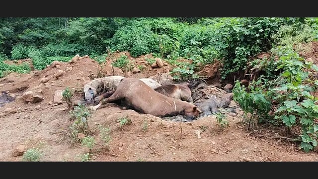 ‘शहरातील मृत जनावरे पुरविण्याचे काम एका खासगी एजन्सीला दिले आहे. या एजन्सीने जनावरे पुरविण्याचे काम व्यवस्थित केले नाही. पावसामुळे माती वाहून गेल्याने पुरलेली जनावरे अस्तावस्थ झाले आहेत. याबाबत एजन्सीला नोटीस दिली आहे. मृत जनावरे व्यवस्थित पुरण्याचे आदेश दिले आहेत. वेळप्रसंगी संबंधित एजन्सीला दंडात्मक कारवाई करण्यात येणार आहे. तसेच मृत जनावरांमध्ये एकही लम्पी बाधित जनावर नाहीत.’