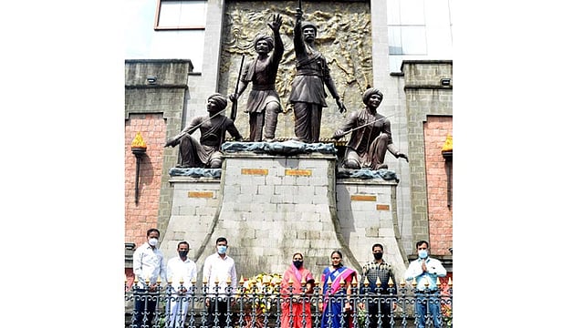 चिंचवडगाव येथील हुतात्मा चापेकर बंधू स्मारक, चिंचवड स्टेशन येथील क्रांतिवीर लहूजी वस्ताद साळवे व क्रांतिवीर वासुदेव बळवंत फडके यांचे पुतळे, दापोडी येथील शहीद भगतसिंग व हुतात्मा नारायण दाभाडे यांच्या पुतळ्यांना पुष्पहार अर्पण करून अभिवादन करण्यात आले. उपमहापौर तुषार हिंगे, सत्तारुढ पक्षनेते नामदेव ढाके, नगरसेवक सुरेश भोईर, राजू बनसोडे, प्रशासन अधिकारी प्रभावती गाडेकर, कर्मचारी महासंघाचे अध्यक्ष अंबर चिंचवडे, सहाय्यक आरोग्य अधिकारी एम. एम. शिंदे, माहिती व जनसंपर्कचे प्रफुल्ल पुराणिक उपस्थित होते. दापोडी येथील हुतात्मा नारायण दाभाडे पुतळ्यास त्यांचे नातू धनंजय दाभाडे, सुरेश दाभाडे, सरोज दाभाडे, नाना वानखेडे, राजेंद्र व सूर्यकांत खोल्लम यांनीही अभिवादन केले.