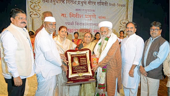 पिंपरी : सामाजिक कार्यासाठी पद्मश्री पुरस्कार मिळाल्याबद्दल पिंपरी-चिंचवड शहरातर्फे विविध संस्था, संघटनांनी समाजिक कार्यकर्ते गिरीश प्रभुणे यांचा सपत्निक गौरव केला. ज्येष्ठ कीर्तनकार डॉ. नारायणमहाराज जाधव यांच्या हस्ते सन्मानचिन्ह, ज्ञानेश्वरी, तुकोबांची पगडी आणि वारकरी उपरणे प्रदान केले.