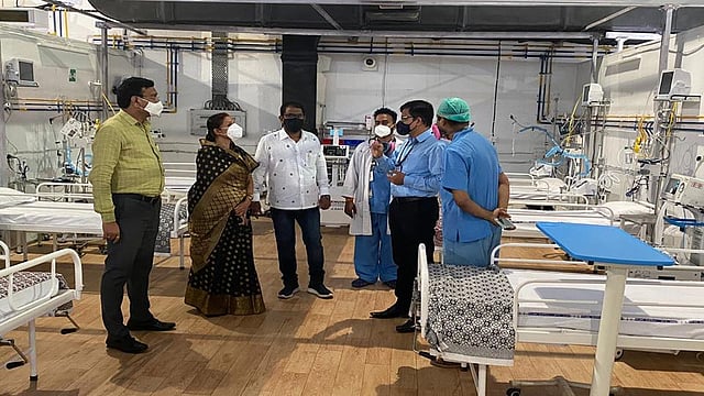 पिंपरी : पिंपरी-चिंचवड महापालिकेच्या वतीने ऑटो क्लस्टर येथे नव्याने उभारण्यात आलेल्या २०० बेडच्या आय.सी.यु., ऑक्सिजन व कोविड 19 हॉस्पिटल आणि आण्णासाहेब मगर स्टेडीयम येथील जम्बो रुग्णालयाची आज महापौर उषा ढोरे व सत्तारुढ पक्षनेते नामदेव ढाके, स्थायी समिती सभापती संतोष लोंढे यांनी समक्ष जाऊन पाहणी केली. या पाहणीनंतर ऑटो क्लस्टर या ठिकाणी रुग्ण दाखल करण्यास सुरुवात झाली असुन, ऑक्सिजन आवश्यक असलेल्या १२ रुग्णांना दाखल करुन घेण्यात आले. यावेळी अतिरिक्त आयुक्त संतोष पाटील, अजित पवार, नोडल अधिकारी सुनिल अलमलेकर आदी अधिकारी उपस्थित होते.