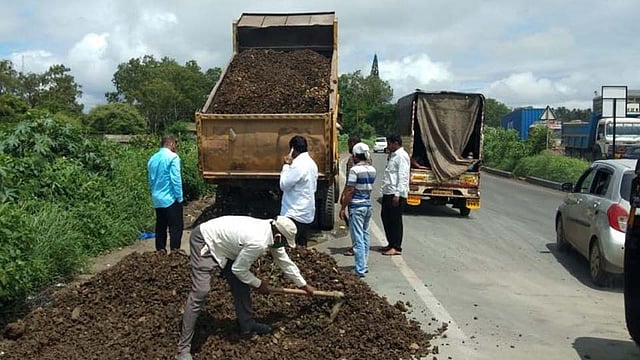 वडगाव येथील प्रवेशद्वाराजवळील कॉर्नरला महामार्गाला साईडपट्ट्या खचल्याने तेथे मोठे खड्डे पडले होते. पुण्याहून एमआयडीसीकडे जाण्यासाठी येथे वळण घेणारी वाहने बाजूच्या खड्ड्यात जाऊन अपघात होत होते. महामार्गावर टोलवसूली व महामार्गाची देखभाल करणाऱ्या आयआरबी कंपनीने येथे वारंवार होणारे अपघात व नागरिकांची सुरक्षितता लक्षात घेऊन साईडपट्ट्या भरण्याचे काम त्वरित करावे, अशी मागणी भाजयुमोने दोन दिवसांपूर्वी केली होती.