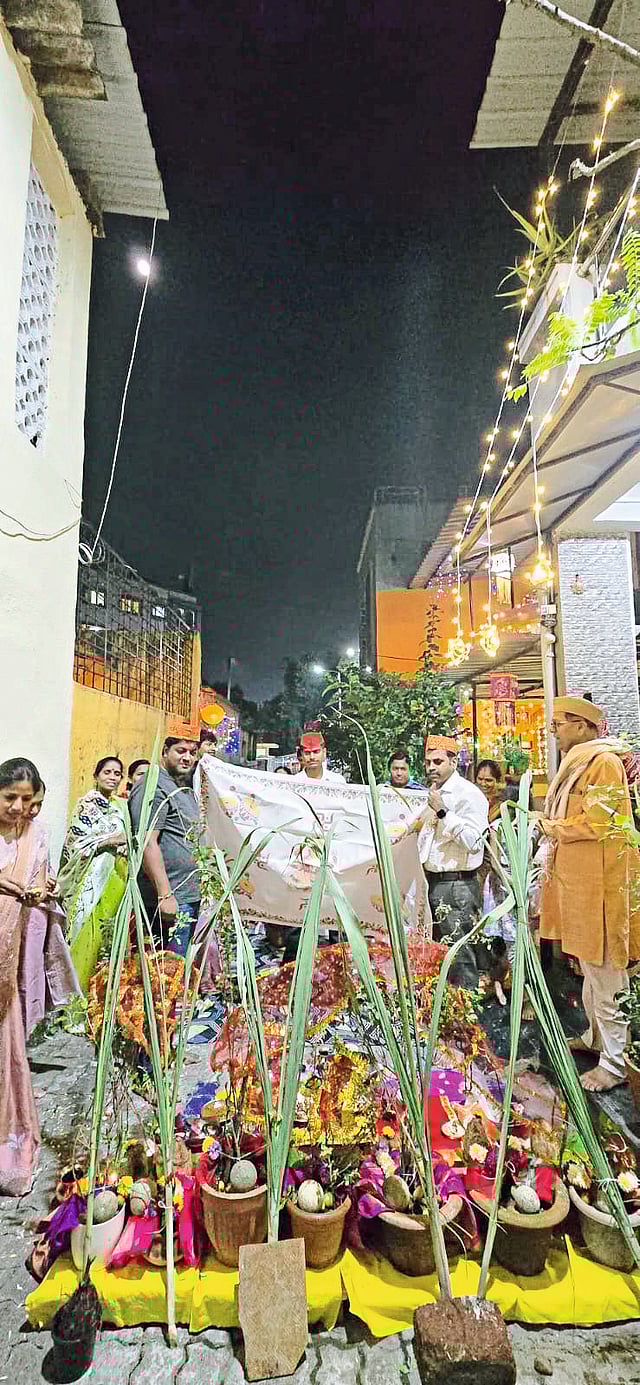 चिंचवड, ता. ५ ः रस्टन कॉलनीत तुळशी-विष्णू विवाहाचा पारंपरिक उत्सव साजरा करण्यात आला. दिवाळीपश्चात विवाहमुहूर्ताच्या प्रारंभाचे प्रतीक असलेला हा सोहळा धार्मिक उत्साह, संगीत आणि सामाजिक एकतेचे सुंदर दर्शन घडवणारा ठरला.