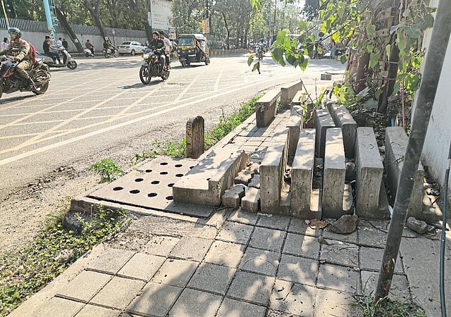 दरम्यान, रस्त्यालगत असलेल्या चेंबरच्या सभोवती भगदाड पडले असून, वाहनचालकांचा तोल गेल्यास गंभीर अपघात होऊ शकतो. या ठिकाणी कोणतीही सूचना किंवा सुरक्षा व्यवस्था बसवलेली नाही नागरिकांनीच दोन सिमेंटच्या विटा उभ्या करून ठेवल्या आहेत.