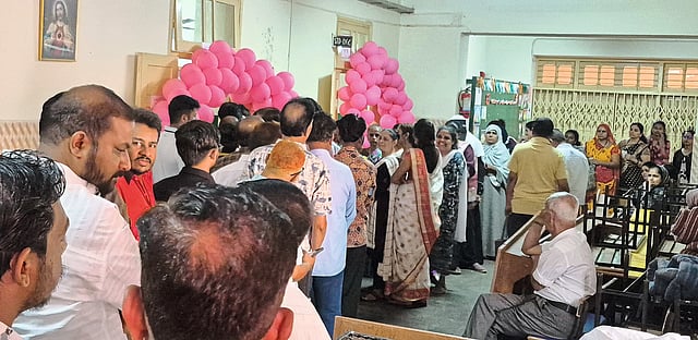 रायवूड : येथील ऑक्झिलियम कॉन्व्हेंट हायस्कूलमधील मतदान केंद्रांवर मतदारांनी रांगा लावत आपला मतदानाचा हक्क बजावला.