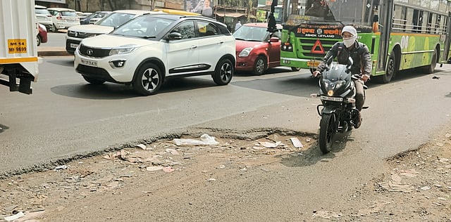 मोशी, ता. ७ : पिंपरी-चिंचवड शहरासह मोशी उपनगरातून जाणाऱ्या पुणे-नाशिक महामार्गावरील मुख्य चौक ते टोलनाक्यादरम्यान असलेल्या मोठमोठ्या खड्ड्यांमुळे वाहनचालक व पादचाऱ्यांना प्रचंड त्रास सहन करावा लागत आहे. महामार्गावर पडलेल्या खड्ड्यांमुळे रस्त्याच्या कामाच्या दर्जावर प्रश्नचिन्ह निर्माण झाले आहे. खड्ड्यांमध्ये वाहने आपटल्याने दुचाकीस्वार अपघातग्रस्त होत असून, अनेकांना पाठदुखी, मानेचे आजार व शारीरिक त्रास जाणवत आहेत.
