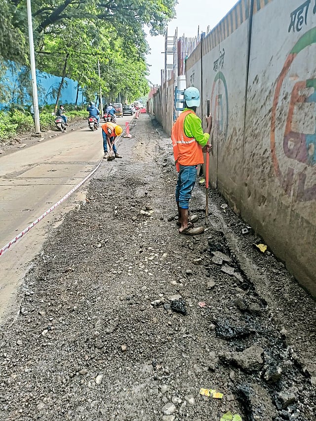 निगडी, ता.९ ः निगडी येथील कै. मधुकरराव पवळे उड्डाणपूल ते चिंचवड स्टेशनपर्यंतच्या मुख्य रस्त्यावरील खड्डे भरण्यास मेट्रो प्रशासनाने सुरुवात केली आहे. मोठ्या खड्ड्यांमध्ये मुरूम आणि डांबर टाकण्याचे काम सुरू झाले आहे.