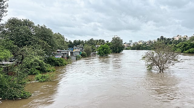 पिंपरी : मावळ परिसर तसेच पिंपरी-चिंचवड शहरात गेल्या दोन दिवसांत मोठा पाऊस झाला. तसेच पवना धरणातील विसर्ग वाढवल्याने थेरगाव केजुदेवी बंधारा व रावेत बंधारा ओसंडून वाहत आहे. येथील केजुदेवीचे मंदिरही पाण्याखाली गेले आहे. दरम्यान, या विसर्गामुळे चिंचवड येथील मोरया गोसावी संजीवन समाधी मंदिरदेखील पाण्याखाली गेले. तेथील पटांगण आणि दर्शनबारीतही पाणी साचले. यासह पिंपरी गावातील संजय गांधीनगर, सुभाषनगर येथील घरांमध्ये पाणी गेल्याने अनेक जणांना स्थलांतरित करण्यात आले. पावसामुळे अनेक ठिकाणी खड्डे पडले असून, ग्रेड सेपरेटरमध्ये खड्ड्यांमुळे वाहनचालक वैतागले असून, काहींना तर वाहतूक कोंडीत अडकावे लागले. तसेच साई चौकातील भुयारी मार्गात पाणी साचून वाहतूक कोंडी झाल्याचे दिसून आले. त्याचीच ही चित्रमय झलक. (संतोष हांडे व रितेश छपरीबंद : सकाळ छायाचित्रसेवा)