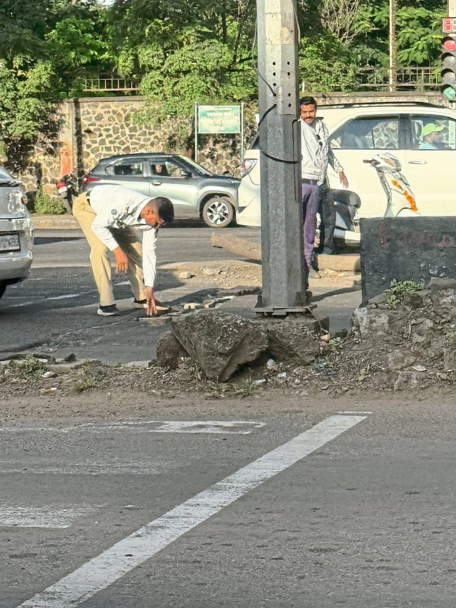फुगेवाडी सिग्नल चौकात मोठ्या प्रमाणात खड्डे पडले आहेत. त्यामुळे वाहनचालकांना त्रास होत होता. याबाबत नागरिकांकडून वारंवार तक्रारी येत होत्या. महापालिकेने मेट्रो प्रशासनाकडे अनेक वेळा पाठपुरावा करूनही दुरुस्तीच्या कामाला विलंब होत होता. अखेरीस वाहतूक पोलिसांनी स्वतः या भागात खड्डे बुजविण्याचे काम हाती घेतले आहे. यामुळे वाहतूक काही अंशी सुरळीत होत आहे. पालिका प्रशासनाने या स्थितीतून धडा घेत शहरातील अन्य रस्त्यांची डागडुजी करावी.