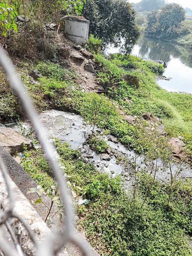 ड्रेनेजलाइन फुटल्याने सांडपाणी नदीत