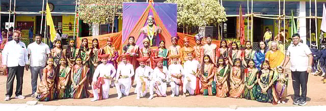 छायाचित्र २ : वडगाव मावळ: श्री रमेश कुमार सहानी इंग्लिश मीडियम स्कूल मध्ये पारंपरिक वेशभूषा करून विविध गुणदर्शनाचे कार्यक्रम सादर करताना विद्यार्थी.