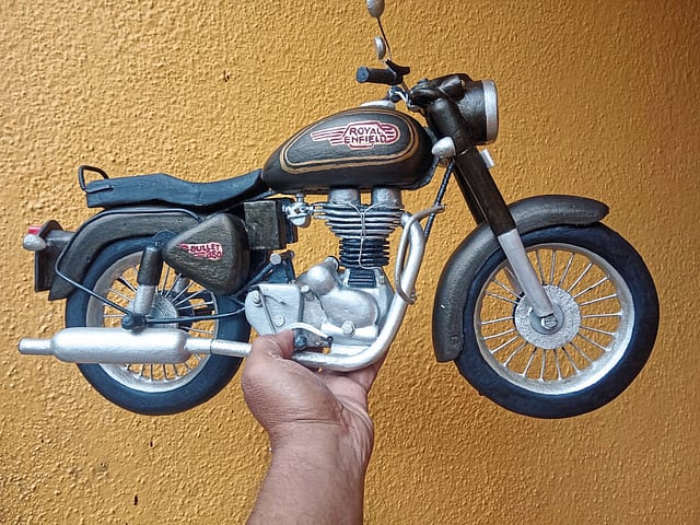 थर्माकोल वापरावर राज्य सरकारने यापूर्वीच बंदी घातली आहे. तरीही, काही गृहोपयोगी वस्तूंच्या आवरणासाठी ते अजूनही वापरले जाते. पुढे हेच थर्माकोल कचऱ्यात जाते. त्याचे विघटन होत नाही. वर्षानुवर्षे ते निसर्गात पडून राहते. त्यामुळे पाणी आणि मातीचेही प्रदूषण वाढते. काही वेळा ते जाळले गेल्याने हवेचही प्रदूषण वाढते. हेच लक्षात घेऊन तळेगाव नगरपरिषदेतील सेवानिवृत्त लिपिक संभाजी भेगडे यांनी थर्माकोलपासून दुचाकींच्या प्रतिकृती तयार करणे सुरू केले. नव्वदीच्या दशकात भेगडे यांचे ‘बुलेट स्पेशालिस्ट’ गॅरेज होते. पुढे ते नगर परिषदेत नोकरीला लागले. त्याचदरम्यान छंद म्हणून रेडियमच्या नंबरप्लेटही तयार करायचे. त्यातूनच थर्माकोलद्वारे दुचाकींच्या प्रतिकृती तयार करण्याचा छंद त्यांना जडला. कोठेही टाकाऊ थर्माकोल दिसले, की घरी आणून त्याचे चौकोनी तुकडे करून साठवून ठेवतात. कामातून वेळ मिळेल तसे एखाद्या दुचाकीचे मॉडेल बनवायला घेण्याचे नियोजन ठरते. थर्माकोलपासून हेडलाइट, आरसे, इंधन टाकी, इंजिन, मडगार्ड, सायलेन्सर आणि इतर भाग तयार केले जातात. चाके आणि इतर भागांसाठी भंगारातील अॅल्युमिनियमच्या तार वापरले जातात. हे सुटे भाग एकत्र करून दुचाकीचे मॉडेल तयार केले जाते. यासह गणेशोत्सव, नवरात्री आणि इतर उत्सवांसाठी थर्माकोलपासून मखरे, मंदिरे तसेच ऐतिहासिक वास्तूंच्या प्रतिकृती साकारून त्यावर कलाकुसर करण्याचा छंद भेगडे यांनी जोपासला आहे.