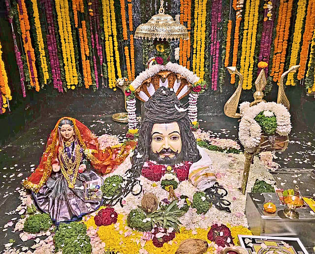 तळेगाव स्टेशन, ता. १६ : महाशिवरात्रीच्या पावन पर्वानिमित्त रविवारी उत्तररात्री तळेगाव दाभाडे येथील ऐतिहासिक श्री बनेश्वर महादेव मंदिरात भगवान शिव आणि माता पार्वती यांचा विवाहसोहळा पारंपरिक थाटामाटात आणि मंगलमय वातावरणात पार पडला. रात्री १२.२४ वाजताच्या शुभमुहूर्तावर झालेल्या या सोहळ्याचे साक्षीदार होण्यासाठी शेकडो शिवभक्तांनी मंदिरात गर्दी केली होती.