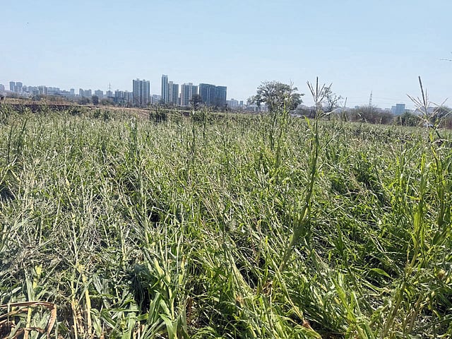 हिंजवडी : बुधवारी आणि गुरुवारी झालेल्या गारपिटीसह जोरदार पावसामुळे आयटी पार्क हिंजवडी परिसरातील पिकांचे मोठे नुकसान झाले. प्रगतशील शेतकरी गणेश साखरे यांच्या शेतात मका पिकाचे झालेले नुकसान.