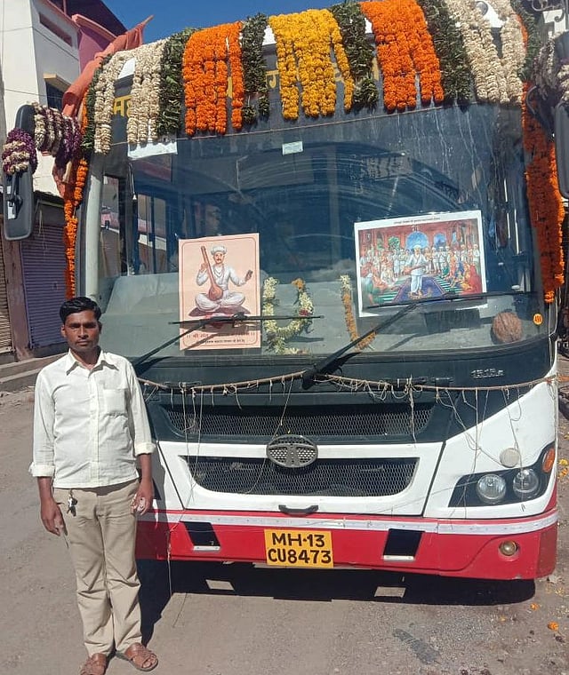 श्री क्षेत्र देहू येथील तुकोबांची पालखी नेणा-या एसटी बसचे सारथ्य करण्याची संधी तळेगाव दाभाडे आगाराचे चालक शहाजी खोटे यांना मिळाली. देहू येथून मंगळवारी (ता. ३०) दुपारी २० वारकरी आणि एका पोलिसाला घेऊन निघालेली एमएच-१३ सीयु-८४७३ क्रमांकाची तळेगाव दाभाडे आगाराची बस पाटस-इंदापूर-बारामती-अकलूज-वाखरी असा पारंपरिक पालखी मार्गाने प्रवास करत रात्री साडेदहाला पंढरपूरला पोहचली.