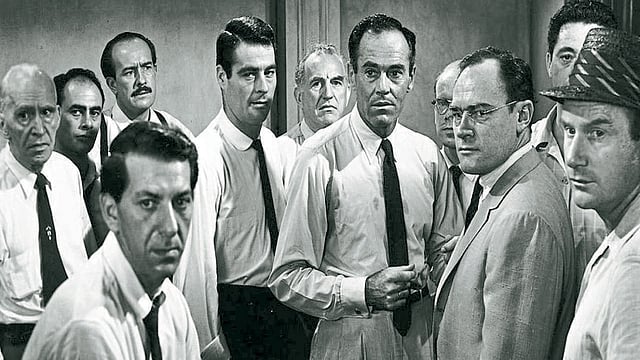 असे ठाम मत असणाऱ्या दहा ज्युरी सदस्यांना एक ज्युरी विरोध करतो आणि म्हणतो, की आपली नेमणूक त्या प्रश्नावर सखोल चर्चा करण्यासाठी झाली आहे आणि एका व्यक्तीच्या जीवन-मरणाचा प्रश्न आपण पाच मिनिटात सोडवू शकत नाही. हा चित्रपट प्रश्न विचारण्याची गरज अधोरेखित करतो. चिकित्सक वृत्तीने अभ्यास केल्यावर असे लक्षात येते, की खुनासाठी वापरलेला चाकू दुर्मीळ नाही,