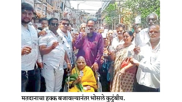 या कुटुंबातील सर्वांत ज्येष्ठ मतदार ९५ वर्षांच्या पार्वतीबाई भोसले या आहेत, तर सर्वांत तरुण मतदार त्यांचा २६ वर्षीय नातू निरंजन आहे. रास्ता पेठेतील एका वाड्यात भोसले कुटुंब राहते. आज या कुटुंबातील सर्व सदस्य एकत्रच नजीकच्या मतदान केंद्रावर मतदानासाठी हजर झाले. या कुटुंबातील सदस्य व माजी नगरसेवक जयसिंग भोसले म्हणाले, ‘‘आम्ही सहा भाऊ आहोत. आमचे एकत्र कुटुंब आहे. प्रत्येक निवडणुकीत मतदानाचा हक्क बजावण्यासाठी आम्ही एकत्र जातो. मागील काही दिवस आम्ही आजूबाजूच्या परिसरात मतदान करण्याविषयी जनजागृती करीत आहोत. मतदानाचे महत्त्व आम्ही नागरिकांना पटवून देत आहोत.’’