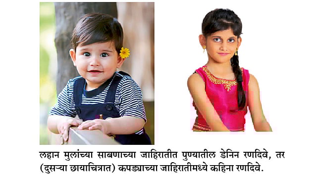 टेलिव्हिजनवरील विविध जाहिराती, कॅलेंडर, पोस्टर्स किंवा अगदी ग्रिटिंग्सवरील गोंडस बाळ आपण अनेक ठिकाणी पाहतो. यातील बहुतांशी मुले पुण्यातील असून, त्यांच्या सहभागाचे प्रमाणही वाढत आहे. अगदी दहा दिवसांच्या मुलापासून १५ वर्षांपर्यंतच्या मुलांचा विविध जाहिरातींमध्ये समावेश आहे.