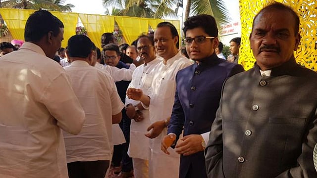 लग्न मांडवाच्या प्रवेशद्वारात खुद्द अजितदादा वऱ्हाडी मंडळींचं स्वागत करायला उभे होते. विशेष म्हणजे, स्मिता आणि आनंदला शुभार्शिवाद देण्यासाठी आलेल्या पाहुण्यांकडे लक्ष देता यावं म्हणून दादांनी एरवी भोवती जमणाऱ्या गर्दीला लांब ठेवलं होतं. राज्याचे माजी उपमुख्यमंत्री दिवंगत आर. आर. पाटील यांच्या कन्या स्मिता आणि माजी आमदार रमेश थोरात यांचे पुतणे आनंद हे मंगळवारी विवाहबध्द झाले. हडपसरमधील लक्ष्मी लॉनमध्ये सायंकाळी सहा वाजून 40 मिनिटांनी हा विवाहसोहळा पार पडला. त्यासाठी राज्यातील सर्वपक्षीय नेते, पदाधिकारी आणि कार्यकर्ते उपस्थित होते.
