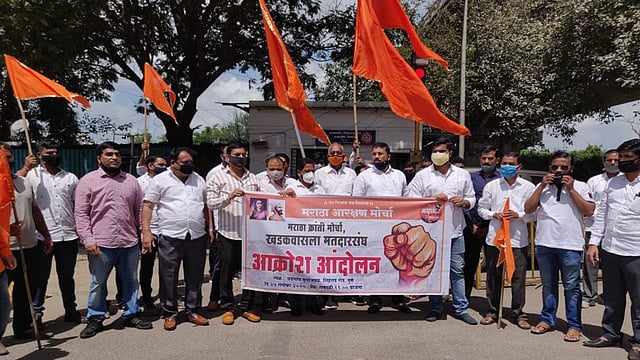 'मराठा समाजाला आरक्षण मिळालेच पाहिजे', 'एक मराठा लाख मराठा', 'आरक्षण आमच्या हक्काचं', आदी घोषणांच्या निनादात मराठा क्रांती मोर्चाच्या कार्यकर्त्यांनी निदर्शने करीत रविवारी सकाळी अकरा वाजता आंदोलन केले. मराठा समाजाच्या आरक्षणाला सर्वोच्च न्यायालयाने स्थगिती दिली आहे. मराठा तरुणांना नोकऱ्या आणि शिक्षणात आरक्षण मिळाले पाहिजे. या पार्श्वभूमीवर केंद्र आणि राज्य सरकारने न्यायालयात आरक्षणासाठी बाजू भक्कमपणे मांडावी, यासाठी मराठा क्रांती मोर्चाच्या कार्यकर्त्यांनी निदर्शने करीत आंदोलन केले.