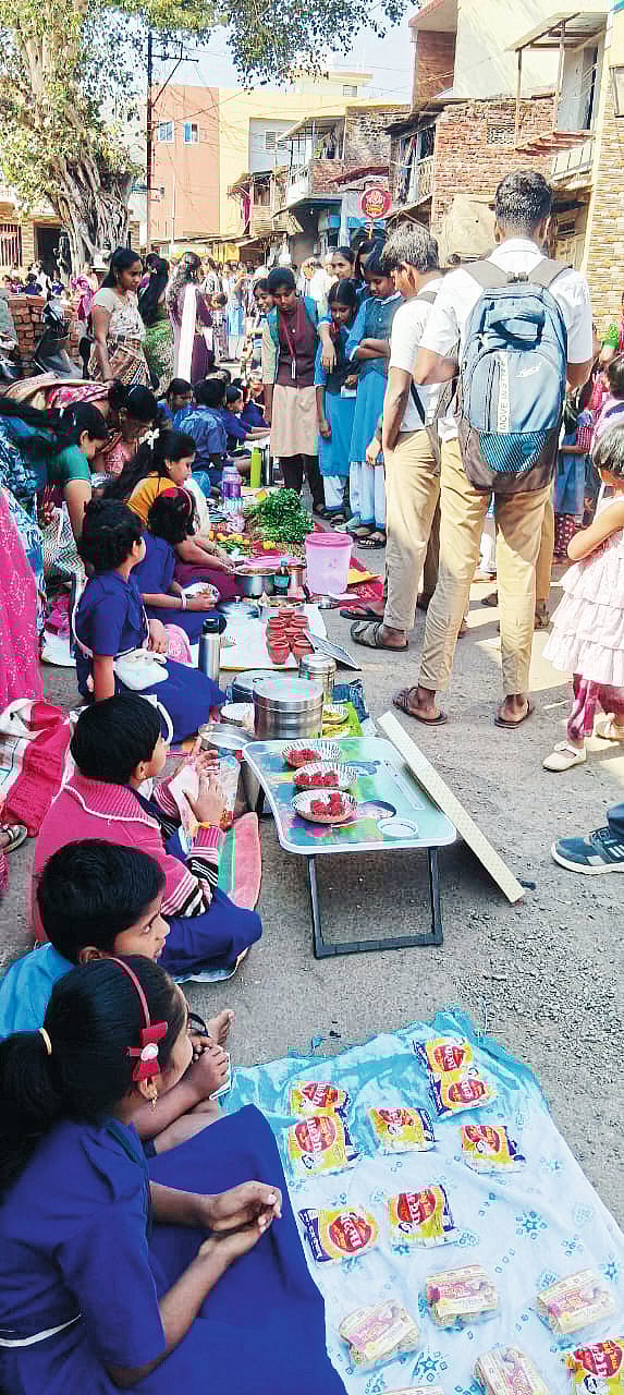 ढेबेवाडी : आनंदी बाजारात सहभागी विद्यार्थी- विद्यार्थिनी.