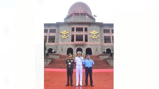 पुणे - देशाच्या पायदळ, नौदल आणि हवाई दलाच्या प्रमुखांनी एकत्रितपणे खडकवासला (Khadakwasala) येथील राष्ट्रीय संरक्षण प्रबोधिनीला (एनडीए) (NDA) नुकतीच भेट दिली. त्यात त्यांनी `एनडीए’च्या प्रशिक्षणार्थींना मार्गदर्शन केले.
