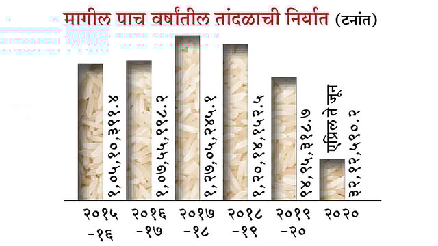 चांगल्या पावसामुळे बासमती तसेच इतर प्रकारच्या तांदळाचे उत्पादन वाढणार असल्यामुळे यावेळी तांदूळ निर्यातीत देशाचा पहिला क्रमांक असणार आहे. इतर वेळी तांदूळ निर्यातीत भारत तिसऱ्या स्थानावर असतो. थायलंड पहिल्या, तर व्हिएतनाम दुसऱ्या क्रमांकावर असतो. भात शेतीच्या क्षेत्रात घट झाल्याने थायलंड केवळ ६० ते ७० लाख टन तांदळाची निर्यात करू शकणार आहे. व्हिएतनाममध्ये दुष्काळजन्य परिस्थितीमुळे त्यांचीही तांदळाची निर्यात घटणार आहे.
